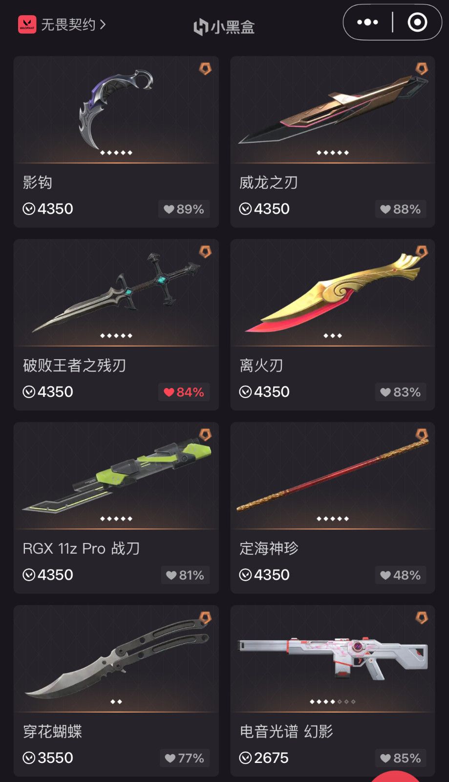 装备描述:建议义父们先进入【个人死斗】测试,确认无异常后再开排位 !不要挂机! 不要挂机! 挂机导致封号或禁止排位必追责! 如闪退弹出HVCl enable,请访问Windows安全中心>设备安全性>内核隔离详情信息>开启并重启电脑 如闪退弹出An IOMMU restriction has been applied, however a system restart is required to complete initialization. (已经应用了IOMMU限制,但是需要重新启动系统才能完成初始化。)请重启一下电脑试试。 错误代码VAN152为封禁机器码,如出现请直接撤单,请勿继续登录 登录界面请耐心等待约2分钟(自动登录),失败可多次尝试 仍无法登录 → 重启游戏/加速器,或客服人工辅助 刀皮:掠夺爪刀 威龙之刃 破败王大刀 离火刃 RGX战刀 金箍棒 黑市蝴蝶 狂徒:23冠军狂徒 全息波普狂徒 起源狂徒 幻影:电音光谱 大狙:离子大狙 起源大狙 左轮:西部未来 鬼魅:掠夺鬼魅 其余为通行证皮肤 祝您游玩愉快