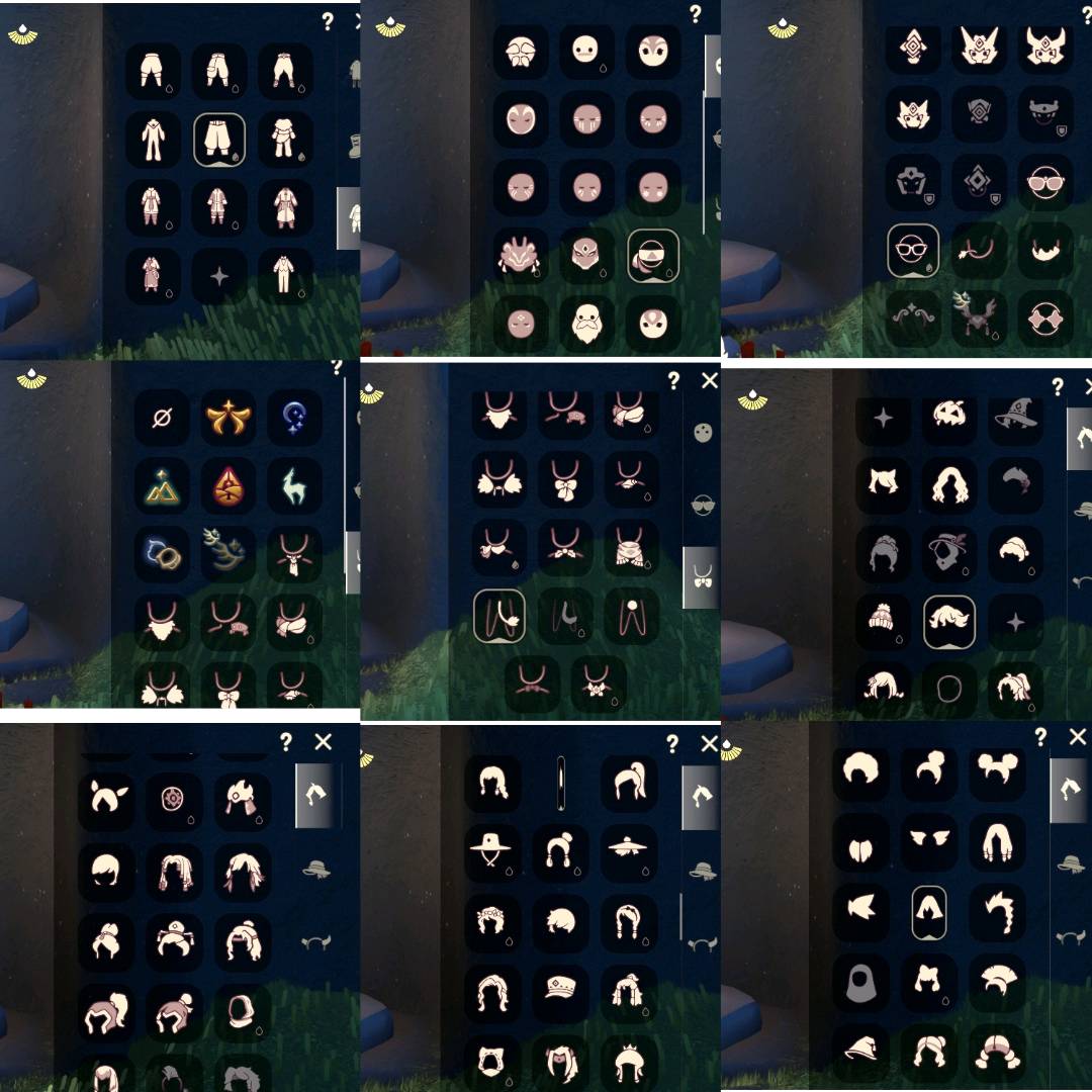 装备描述:【毕业图】晨岛,云野,雨林,霞谷,暮土 【毕业季】夜行季,拾光季,归巢季,双星季 【稀有礼包】彩虹耳机,大蝴蝶结,姆明饰品套装,夏日有友礼包,符,兔子发饰,蝴蝶与花发饰,小狗周年头饰,四叶草头饰,小黄鸭发饰,蝙蝠斗,绊爱斗,青衫落拓礼包,冥龙南瓜,周年庆抱枕,大铁头 【毕业物品】留辫蘑菇头,高领舞服,棕熊面具,绒毛斗篷,西部帽,粗框眼镜,季卡相机,五塑彩带斗,五塑彩羽发,飞天盘发,蓝色星星光环,暮星斗篷 【热门复刻】绿芽,海洋斗,武士裤,正太头,虚荣,猫耳发型,搓澡巾,花环长发,红耳机,箬笠,军帽,雨伞,高音钢琴,白金斗篷,黑金斗篷,红金斗篷,黄鼠狼面具 疯帽发型