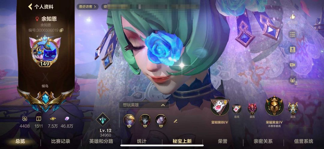 可排位❤️7.5w收藏❤️485皮肤❤️5神话❤️至臻水晶玫瑰格温❤️粉龙回城