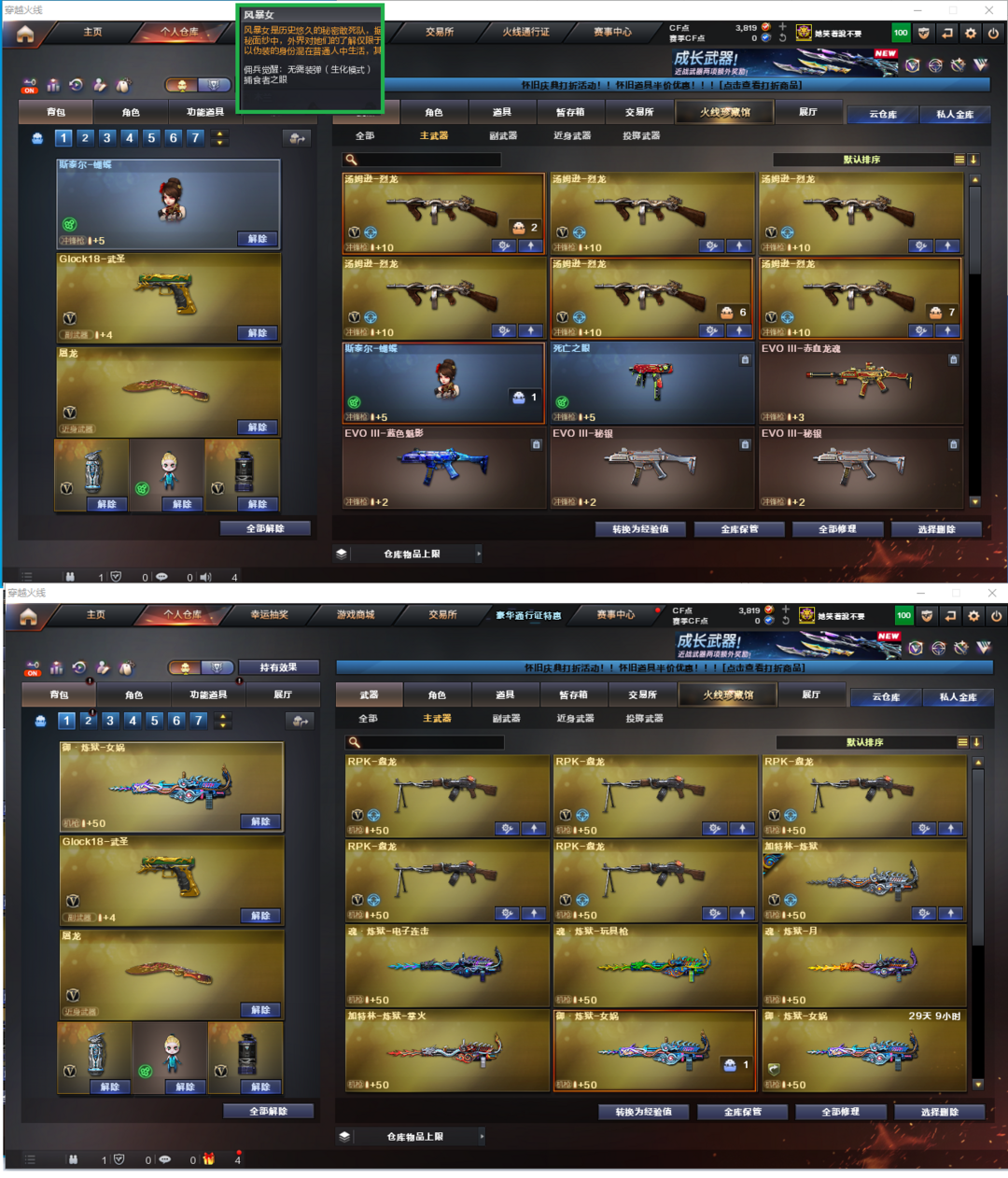 装备描述:排位:可以、、、、、、、、、爆破四防:幻神、98K星神、USP手枪柯尔特、白虎、QBZ金色蔷薇、QBZ王者蔷薇、、、毁灭音效、雷神音效、黑龙音效、极光音效、火麒麟音效、黑骑士音效、、、1套夜魔、、、生化人物(风暴女、王者春)爆破四防(王者魅影)