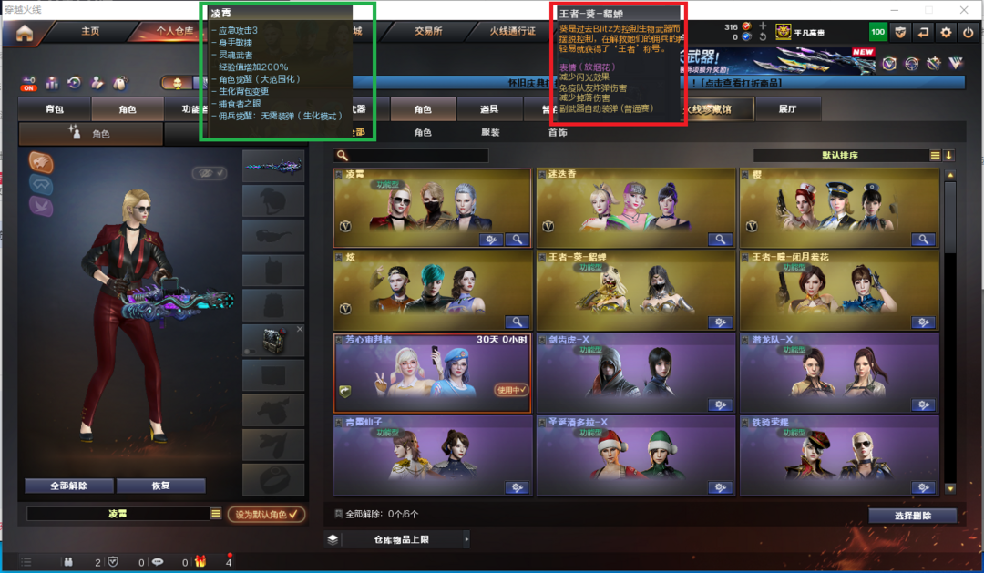 装备描述:排位:可以、、、、、、、、、、、、、、、、、、、、爆破四防:幻神、2把COP堕天神、QBZ金色蔷薇、堕天神全套、王者冰魄、、、毁灭音效、雷神音效、火麒麟音效、黑骑士音效、、、7套堕天神、7套夜魔、、、生化人物(凌霄、王者闭月羞花)爆破四防(王者貂蝉)