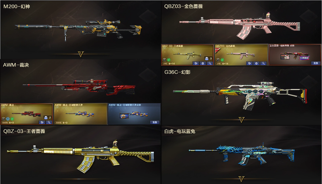 爆破装⭐幻神黄忠+裁决百城皮肤⭐QBZ蔷薇枪娘+G36C幻影白虎电玩蓝兔⭐4防王者春+3防涂鸦