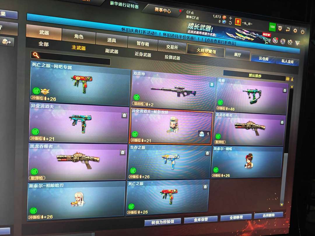 110v6盘6烈斯太尔蝴蝶、枪娘、清道夫小人枪、八面炼狱泡泡象炽芒蝶刃。风神幻神星神、传说王者qbz