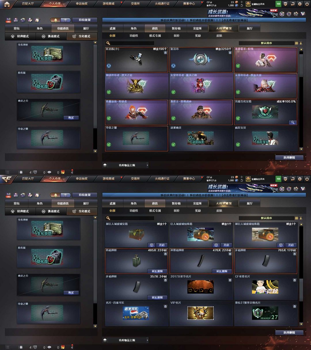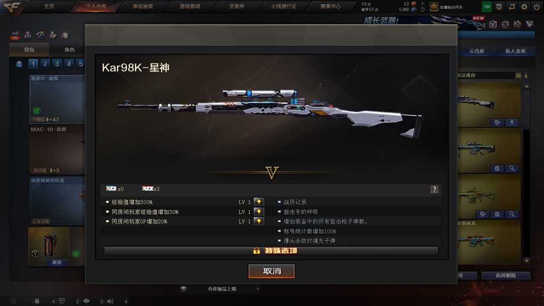 南部双全装/98k星神/六列蝴蝶/六盘炼狱双皮/四方带生化标记的隼/四方鹰/三生化妖姬雷/双面神/