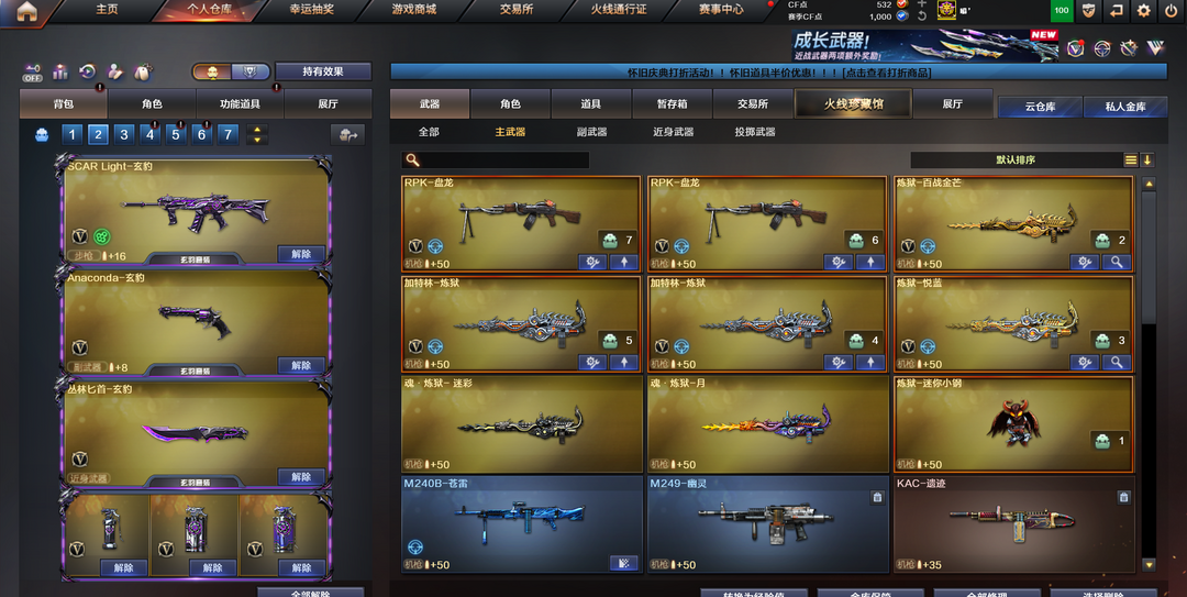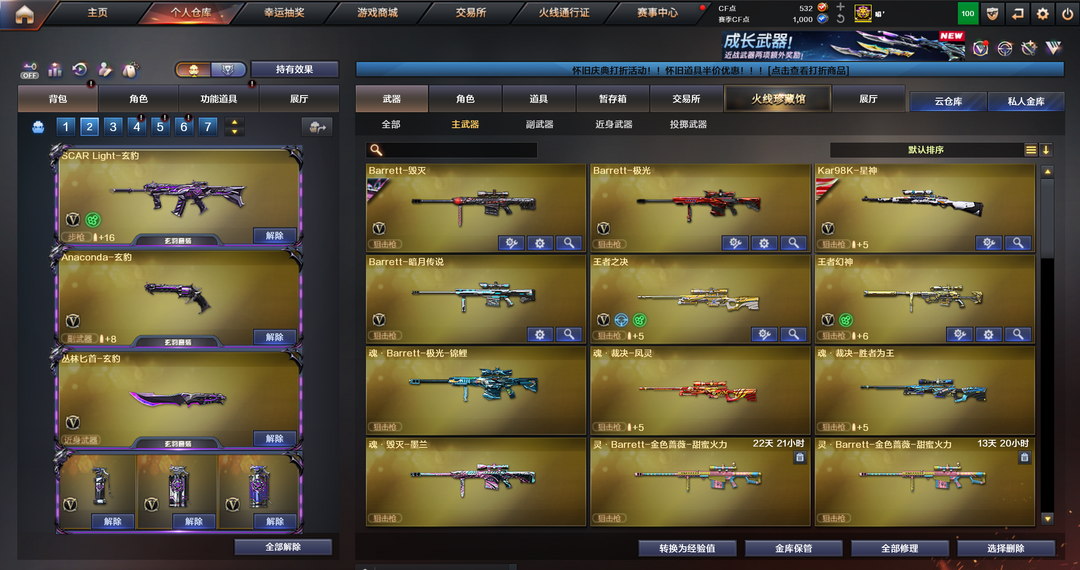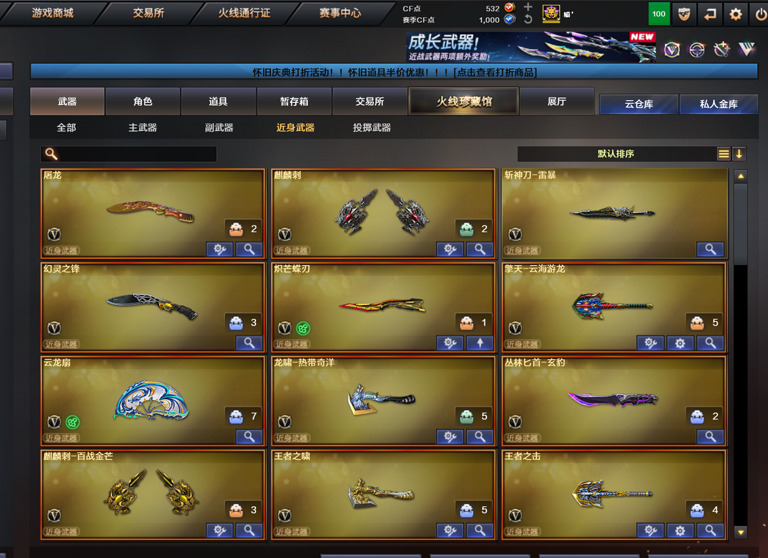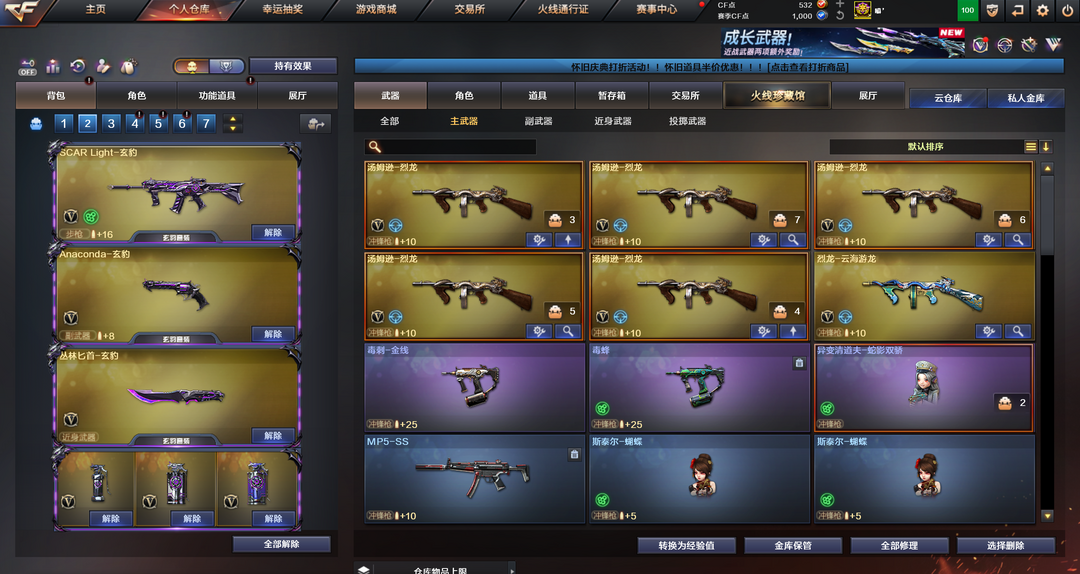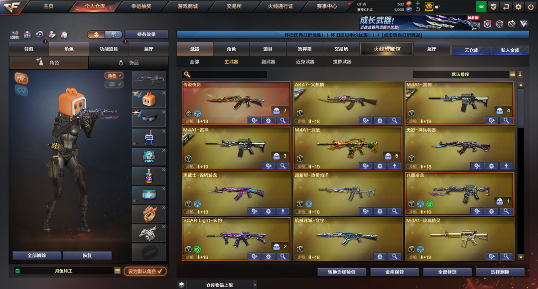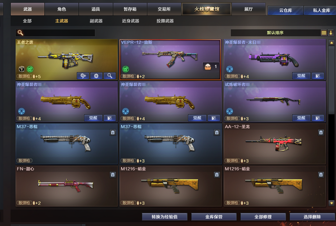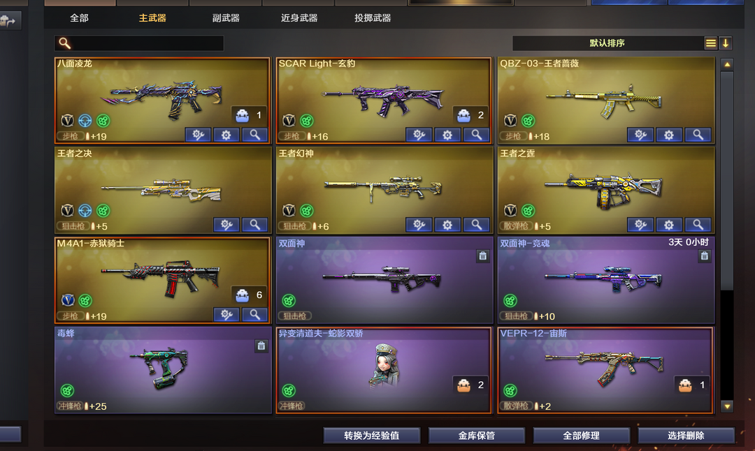 装备描述:114V⭐星神三件套⭐传说夜影⭐6烈2斯泰尔蝴蝶1枪娘暗刃1清道夫小人⭐八面玲珑蝴蝶刀2盘3炼狱小刚⭐玄豹全套⭐宙斯全套⭐弹夹全套⭐全套幽灵包括伪装幽灵⭐救世主不退包也有⭐王者幻神⭐王者之翼⭐王者之烈⭐王者之啸⭐王者QBZ⭐王者白虎⭐白虎之魄⭐王者之决⭐王者之霆⭐王者之击⭐满配手雷⭐副武器修罗⭐天神⭐雷暴⭐武圣⭐毁灭⭐极光⭐双面神⭐屠龙⭐云龙扇⭐麒麟刺⭐弹夹全部都有一千多天⭐还有救世主不退包⭐