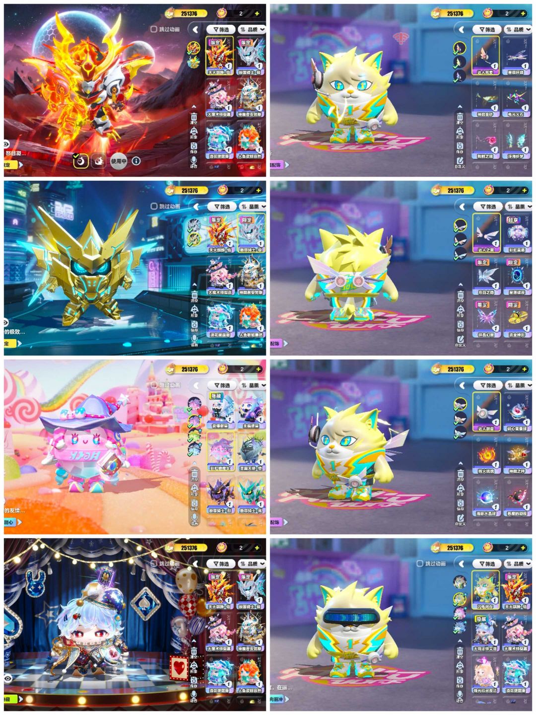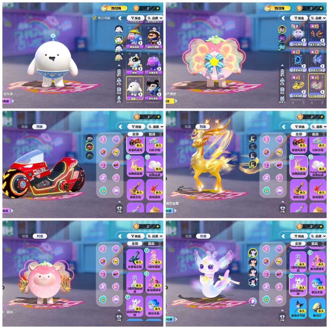 装备描述:25万潮主播号⭐单子ID⭐达人之翼⭐闪电阿存⭐黄金大机甲⭐彩虹糖魔女⭐奇迹大马戏⭐四只小羊⭐彩虹星愿