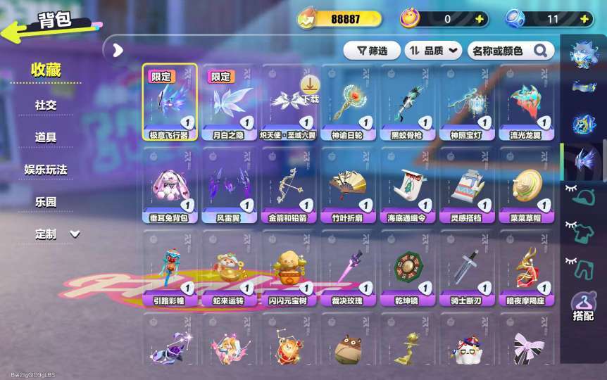 装备描述:闪电阿存/单字ID诸/11至臻/小羊/满词条百变羽翼