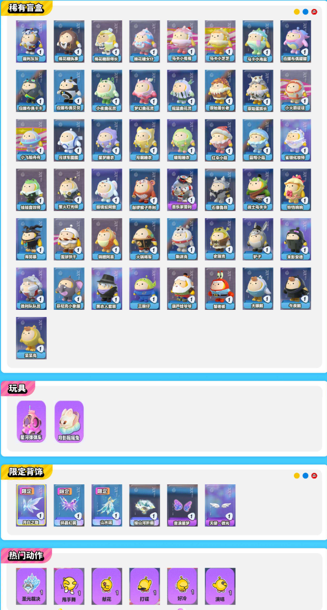17W潮流18至臻角色兔兔车彩虹糖魔女月白之隐碎晶幻翼音爆耀星100典藏角色星云船长洛洛冰霜骑士