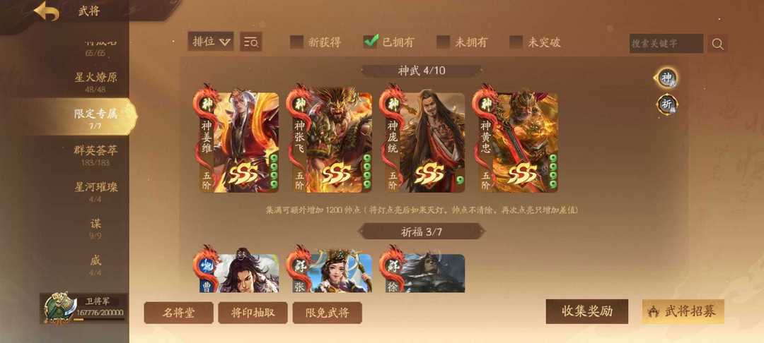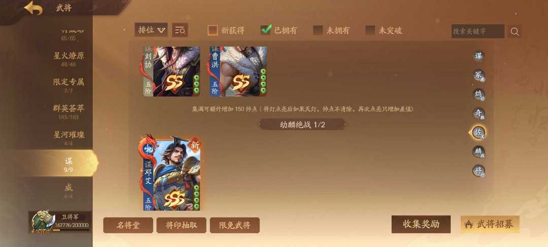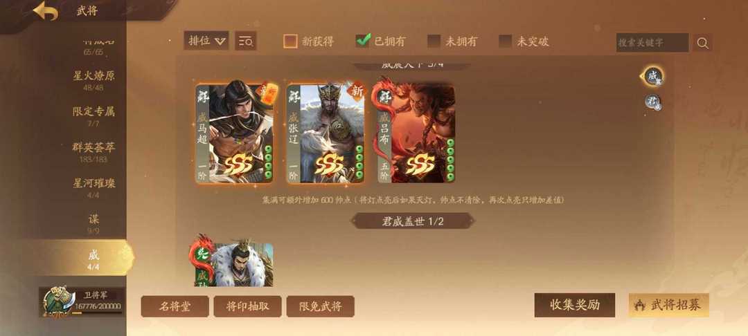 装备描述:威马超 威张辽 威孙权 威吕布 谋姜维 谋荀彧 谋邓艾 神张飞(限) 神黄忠 神庞统 崔令仪 钟毓 夏侯徽(传)张奂 许靖(丹枫动)曹芳 柏灵筠 乐蔡邕 乐貂蝉 乐蔡文姬(限)乐祢衡(传)乐诸葛果 乐小乔(传)庞宏 袁胤 薛灵韵(限动)周宣 (传)黄舞蝶(限动)刘烨 和尚 朱建平 张曼城(传)曹宪 (限)丁尚婉 甘糜夫人 樊玉凤 清河公主 徐馨 孙霸 谋司马师(传)谋张秀 谋沮授 谋曹洪 星张春华 张璇 徐荣(至臻动)张琪瑛 曹纯 庞山民 腾公主 庞会 陈硅 贾充 孙綝 留赞 孟优 向宠 陈泰 胡遵 吕据 文钦 吴范 周不疑 苒姬 陈氏 许劭 关宁 管宁 黄承彦 刘巴 ssa曹纯