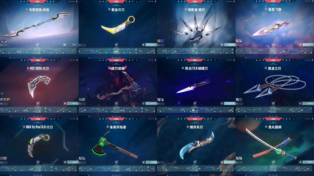 可排✨24套25刀青龙刀✨噬影套✨异象套西部套✨黯夜套✨千灵套✨奇点套✨显卡塑水玄月剥皮假面紫金刀