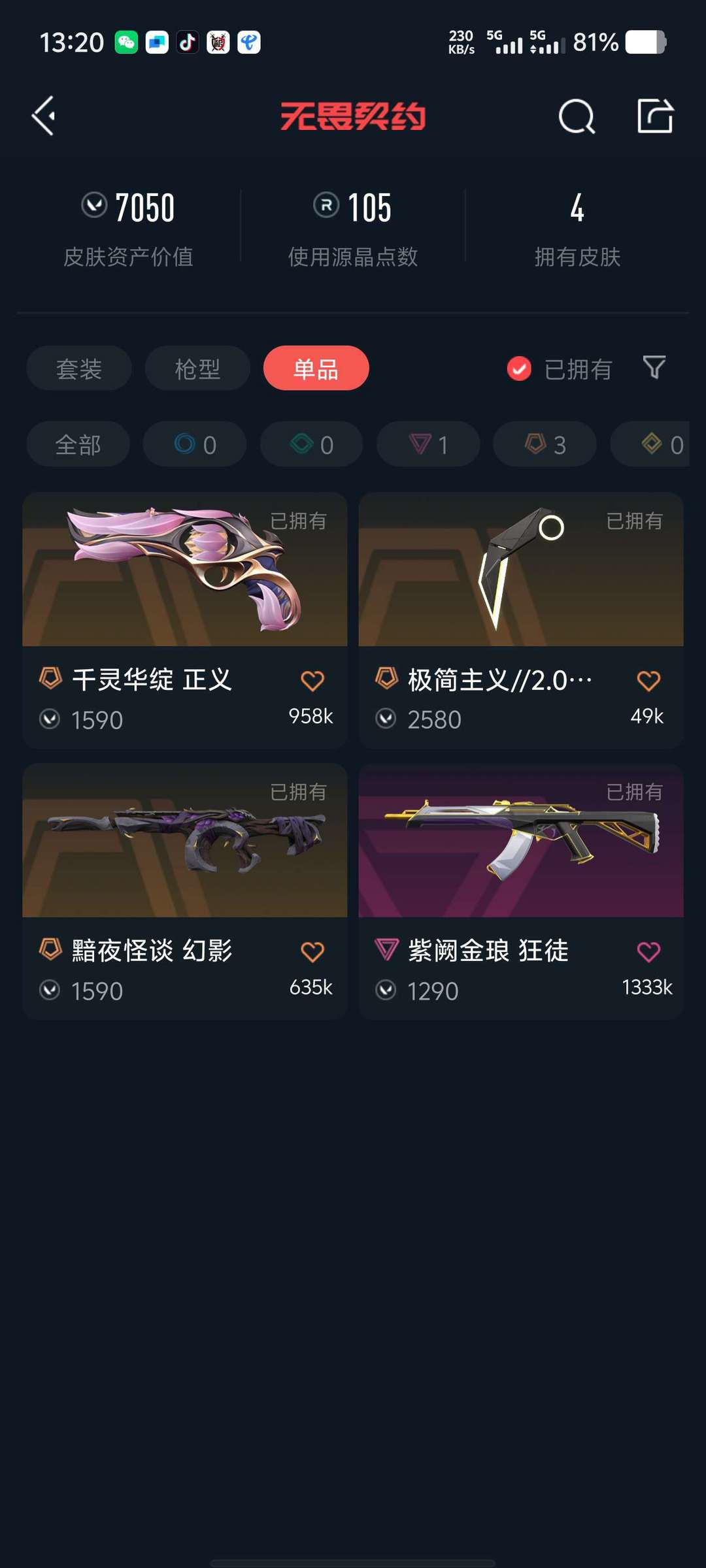 无违规,,极简2.0爪刀,紫金狂徒暗夜怪谈幻影,千灵华绽正义,想玩的可以抓紧入手炸鱼轻点炸,封号必究