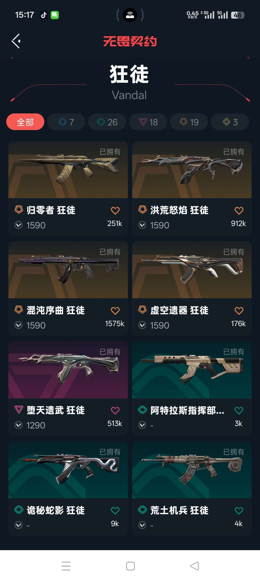 装备描述:混沌+流脓+虚无+弃王+归零AK,莲花+侦查+归零M4,VCT爪刀+莲花苦无+镭切,龙狙,西部正义+离子正义