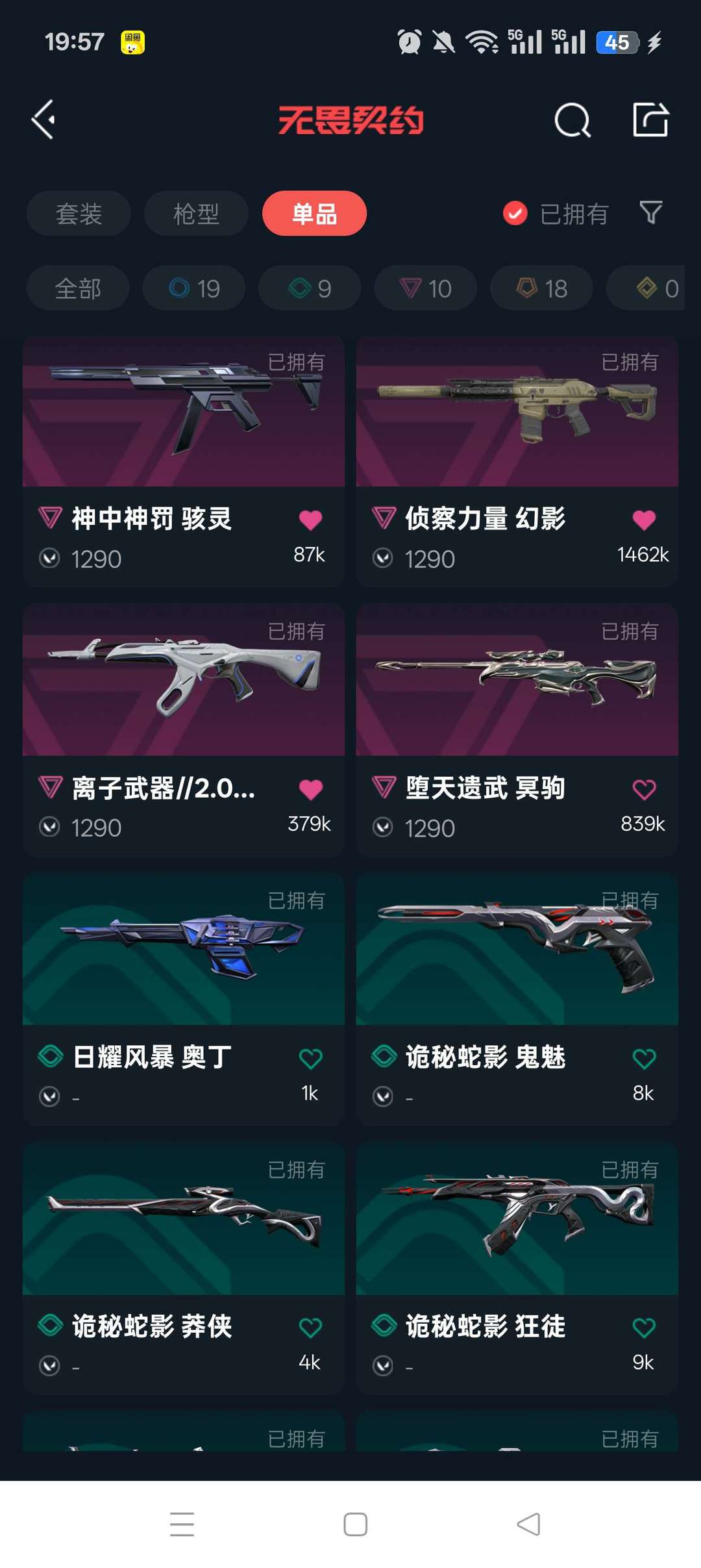 传奇数量:19