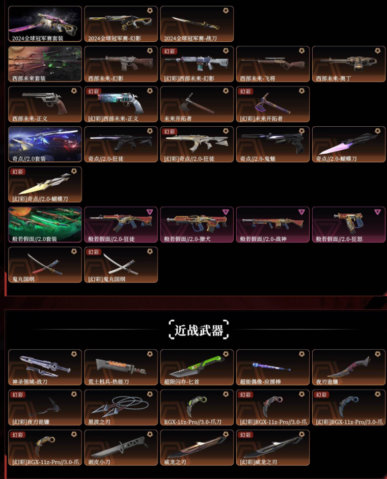 装备描述:2024冠军西部未来奇点2.0鬼丸国纲显卡爪威龙之刃夜刃诡镰黑波之刃混沌狂徒塑水宗狂徒奇点幻影盖亚狂徒离子狂徒紫金狂徒盖世狂徒奇点骇灵奇点正义