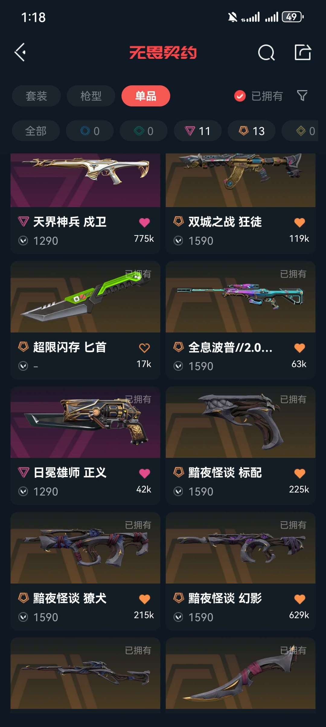 传奇数量:13