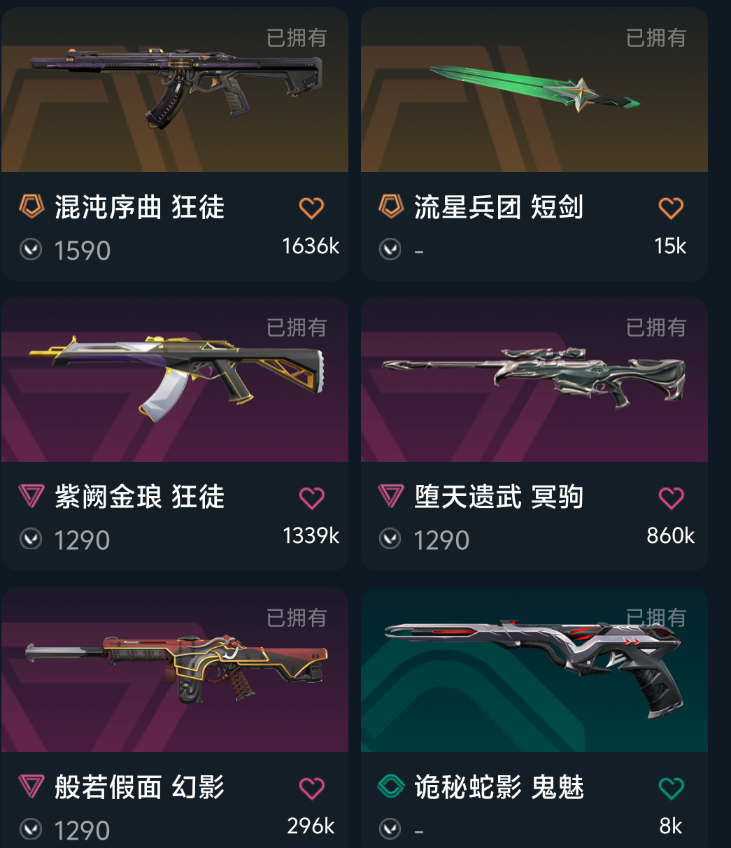 黑波,鬼丸,奇点蝴蝶刀,威龙刀,奇点正义,混沌AK,塑水AK,紫金AK,堕天大狙,归零大狙,恶鬼M4