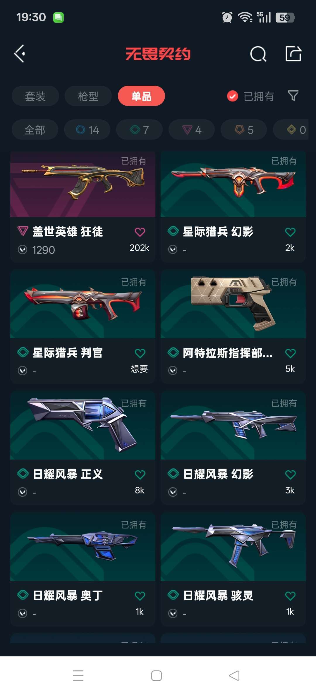 武器皮肤数量:30