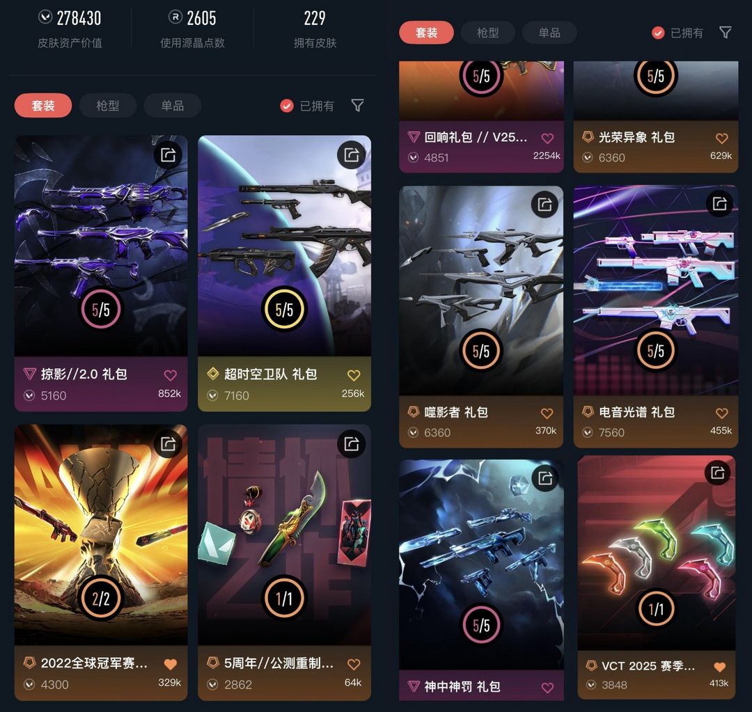 可排/28W库/22冠军掠影2.0套超时空套苍龙之刃光荣异象套神中神罚套电音光套创纪元套西部套奇点套