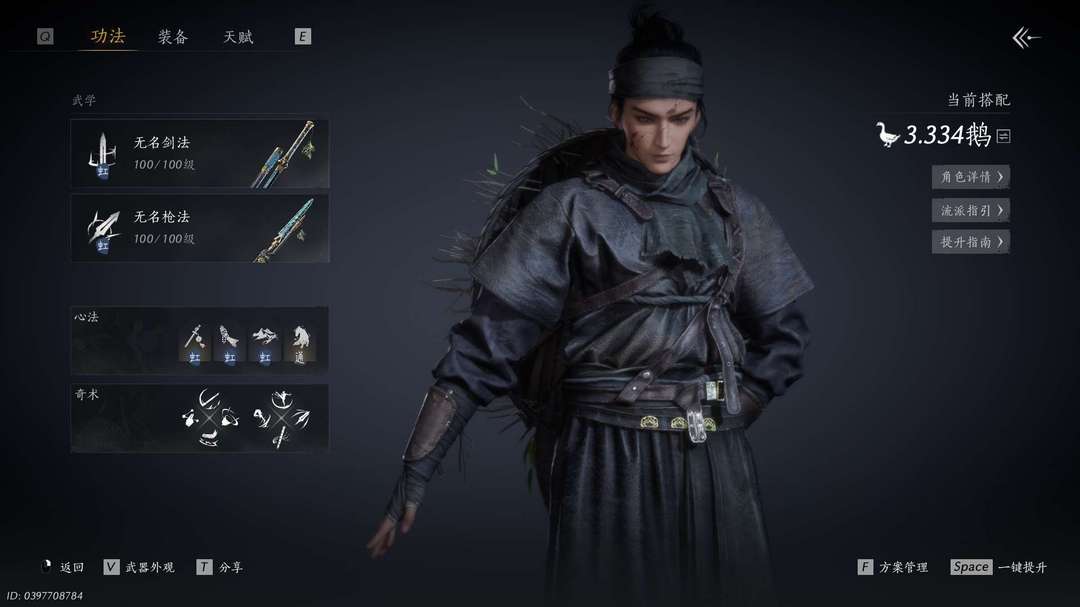 战力3.3鹅,无名心法五重,正在努力提升战力,祝大家玩得开心。