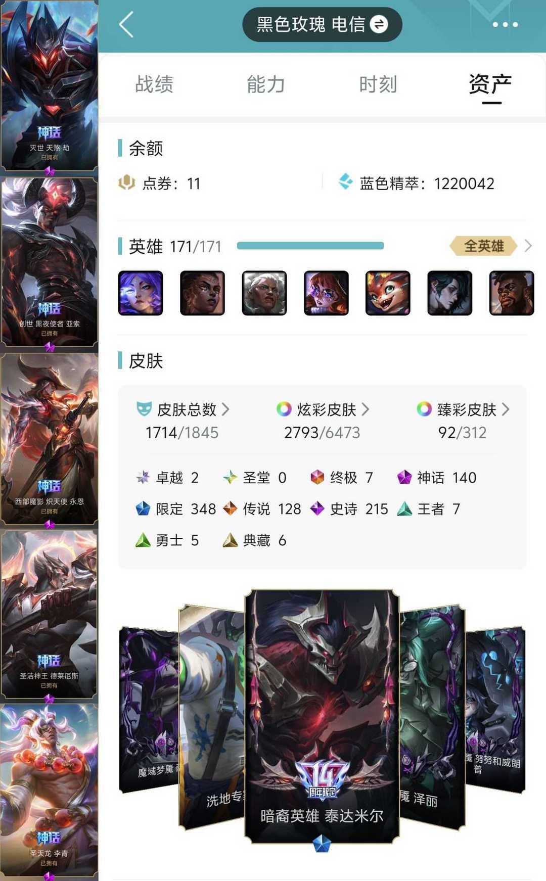 顶级1714原皮✌冠军臻彩✌名人堂新皮已更✌灭世天煞圣洁神王✌创世黑夜亚索炽天使暗裔英雄3000t1
