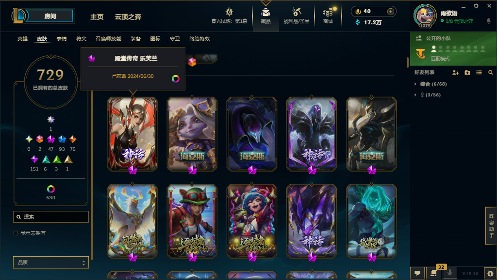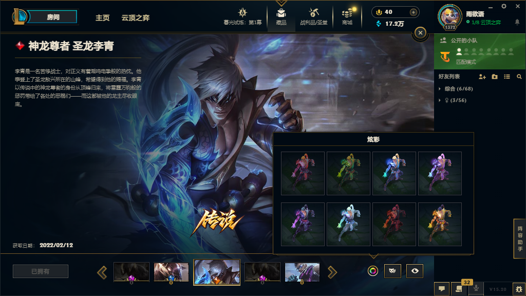 【全区第一】3000皮肤⚡殿堂阿狸殿堂乐芙兰⚡斗魂觉醒⚡天龙之子EZ⚡臻彩李青⚡神话小小英雄神话特效