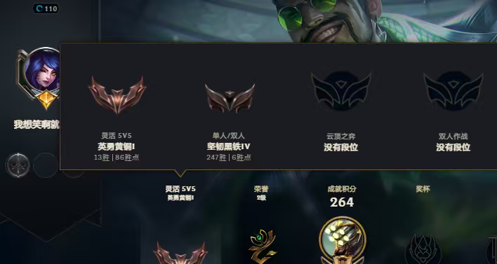段位:110级 坚韧黑铁IV级 坚韧黑铁IV