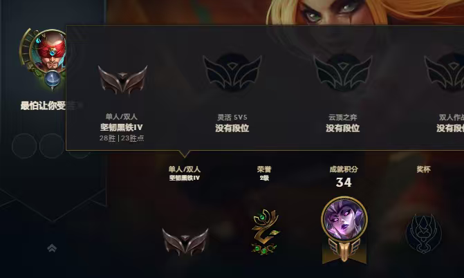 段位:36级 坚韧黑铁IV级 坚韧黑铁IV