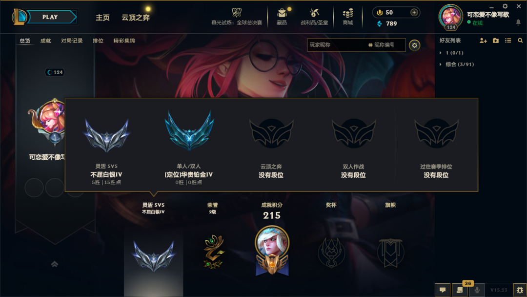 段位:125级 华贵铂金IV