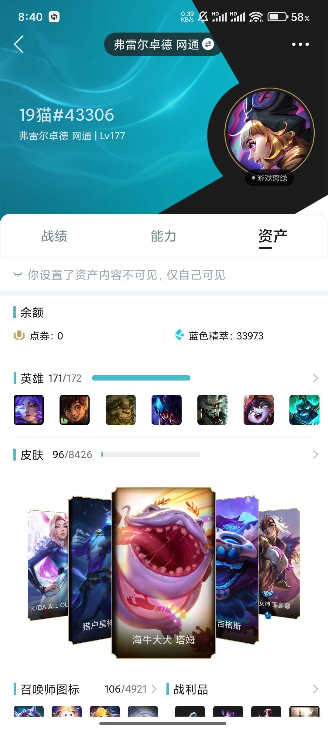 全英雄,可排位,西部魔影永恩,黑暗使者亚索,等共96皮肤)