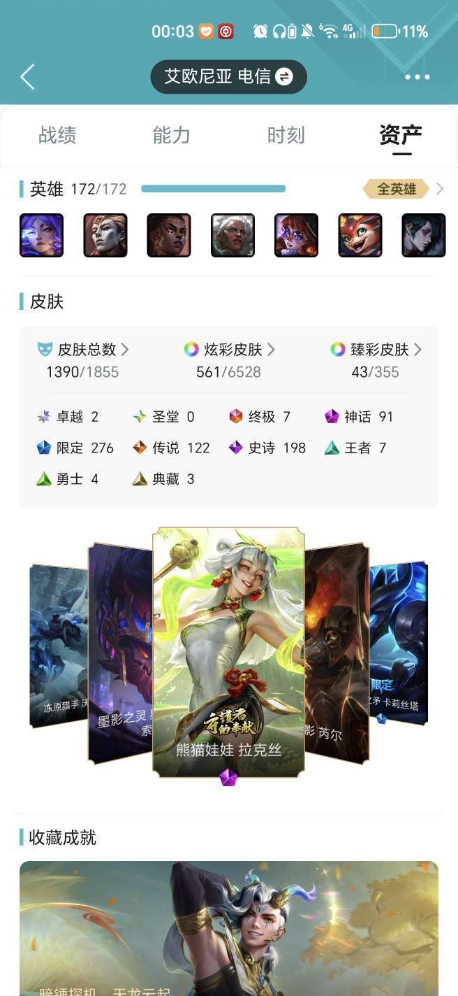 自用号(可排位)1400+皮肤,每个英雄都有皮肤,有龙瞎,年限,冠军等限定