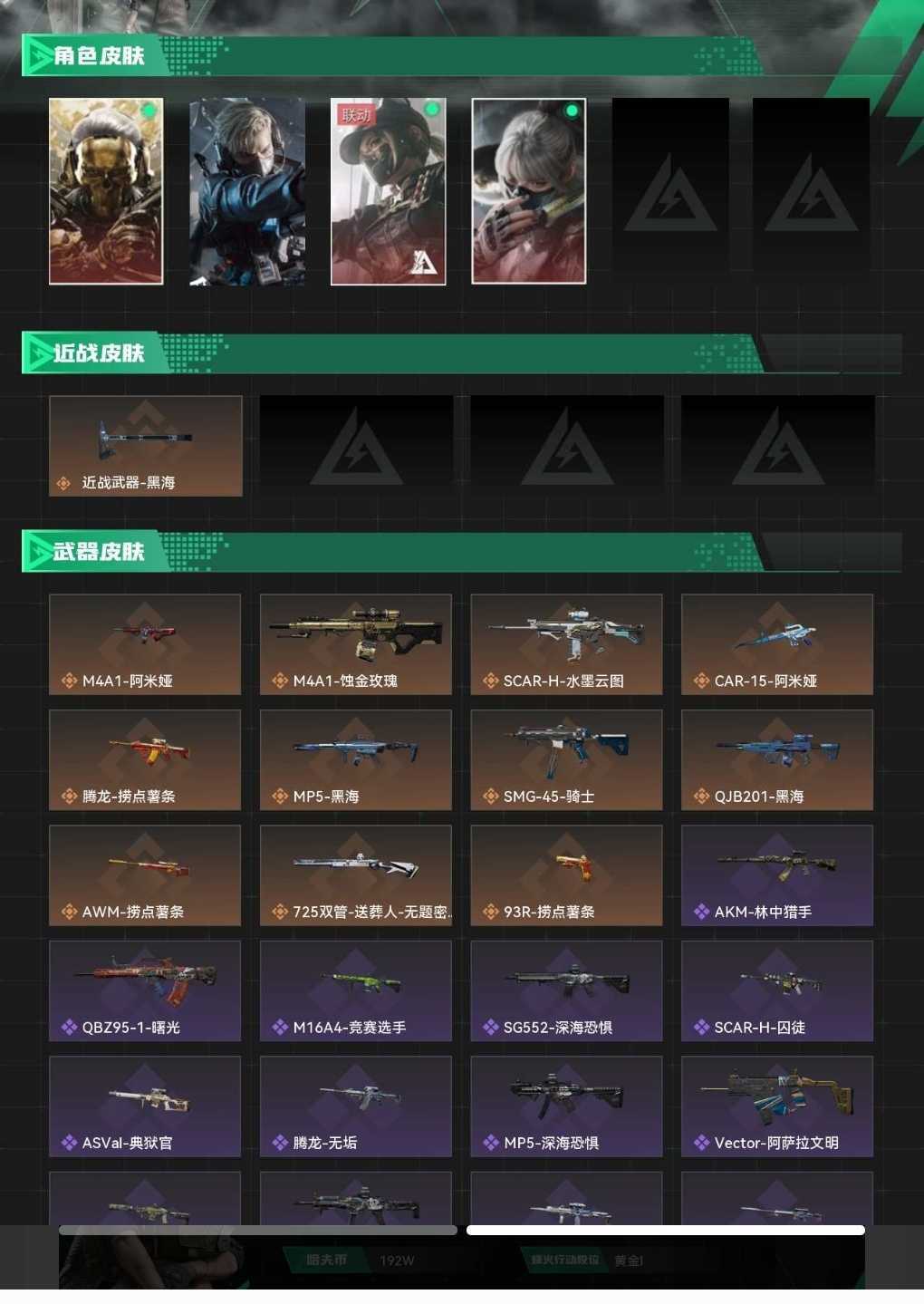 皮肤号 干员3红皮,1刀皮黑海红狼﹣蚀金玫瑰/骇爪﹣水墨云图 露娜-黑天际线 蜂医送葬人