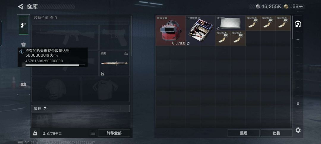 千万哈夫币 等级:57级 全网性价比1:28 现金账号,全图已更新。账号未封,押金自退。