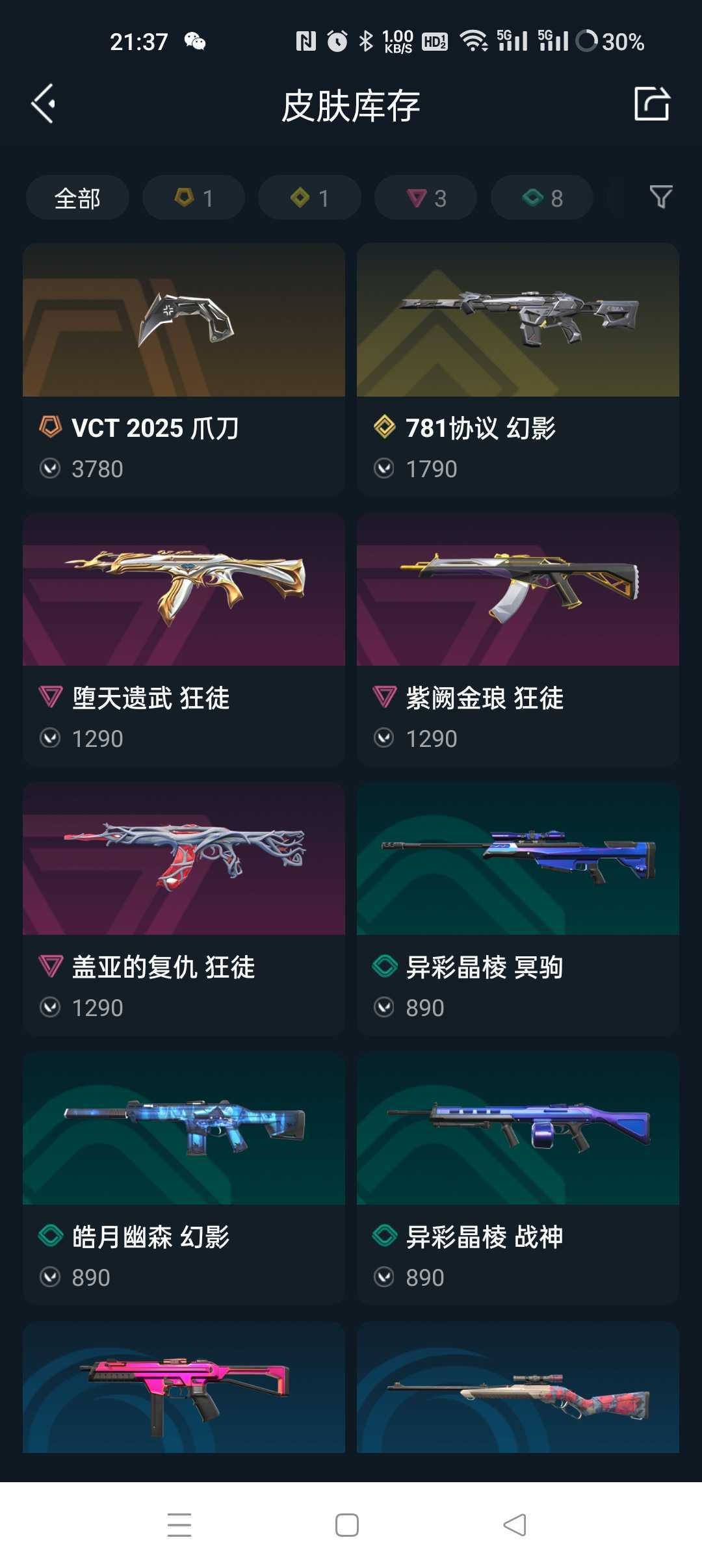 限制: 撤单率<75%才可租用此帐号装备描述:VCT爪刀2025✨紫金盖亚狂徒✨堕天遗武狂徒✨781幻影✨特效拉满✨到时不挤号✨禁止开挂