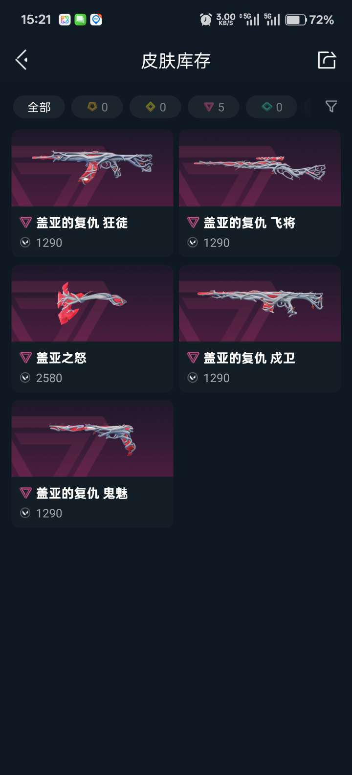 盖亚套装五个,狂徒,戍卫,飞将,鬼魅,盖亚之怒