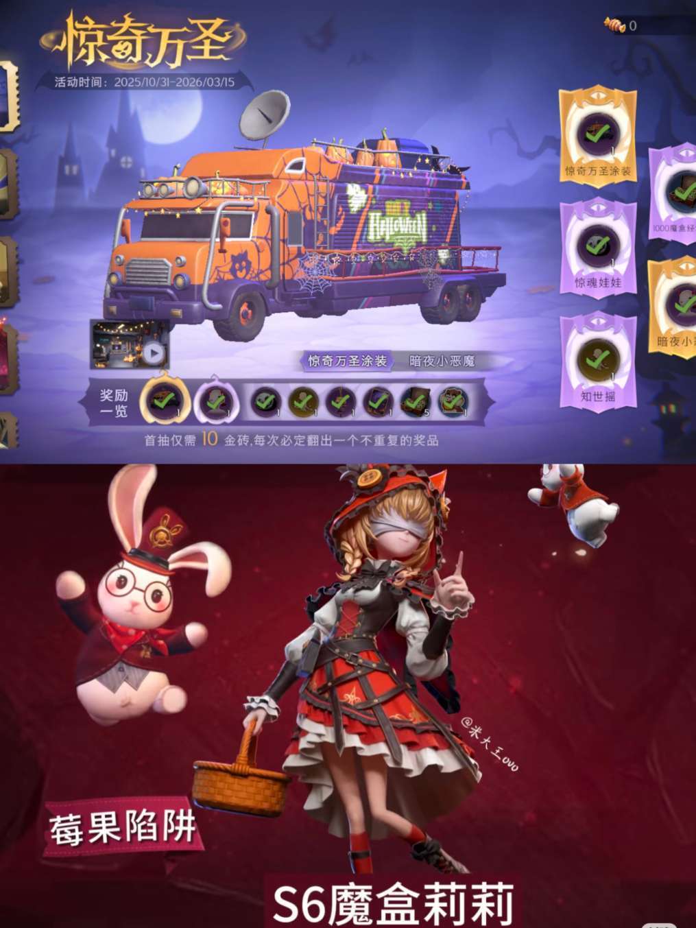 千夜星谕新皮【内测全皮号有兔宝】1幻梦5金27紫全魔盒✨非遗莲华渡镜生遗梦露比道具全套惊奇万圣满抽