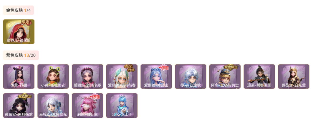 1金13紫✨镜花辞✨罗丽✨冰公主✨情公主✨水王子✨白光莹✨素影瑶光✨绣春逍影✨小鲨匕首✨小蛇鞭