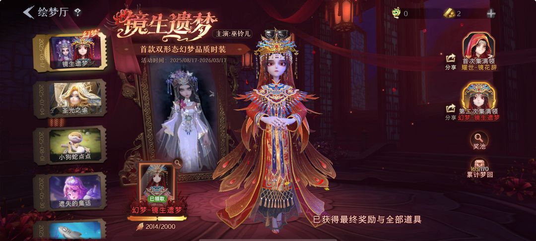 全图鉴全内测❤️莲华渡❤️镜生遗梦❤️1红5金20紫33道具皮【兔宝+满金皮+满氪条+满魔盒】