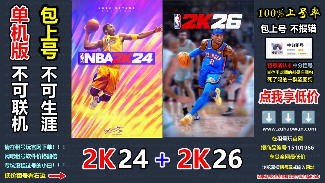 不可联机❤️NBA2K26+2K24✨100%上号率✅单机号!♋包天包夜超划算!✨包进游戏不报错!