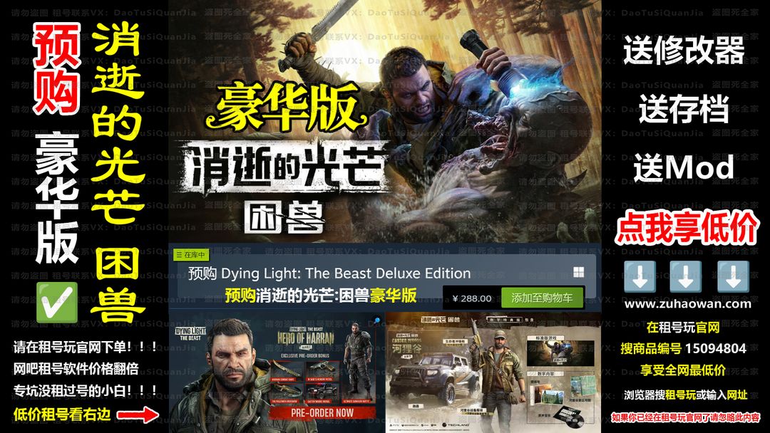 消逝的光芒:困兽♋预购 豪华版❤️包天包夜超划算!!!✨中分租号✅租号送修改器!✅租号送满级存档!