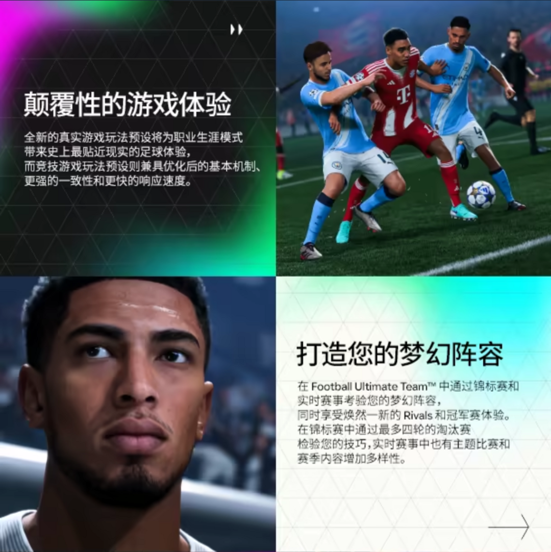 装备描述:在《EA SPORTS FC™ 26》中,俱乐部由您主宰。随心畅玩,享受采纳社区反馈后焕然一新的游戏体验、为新赛季带来全新剧情的经理实时挑战,以及灵感源自足坛传奇的原型系统。