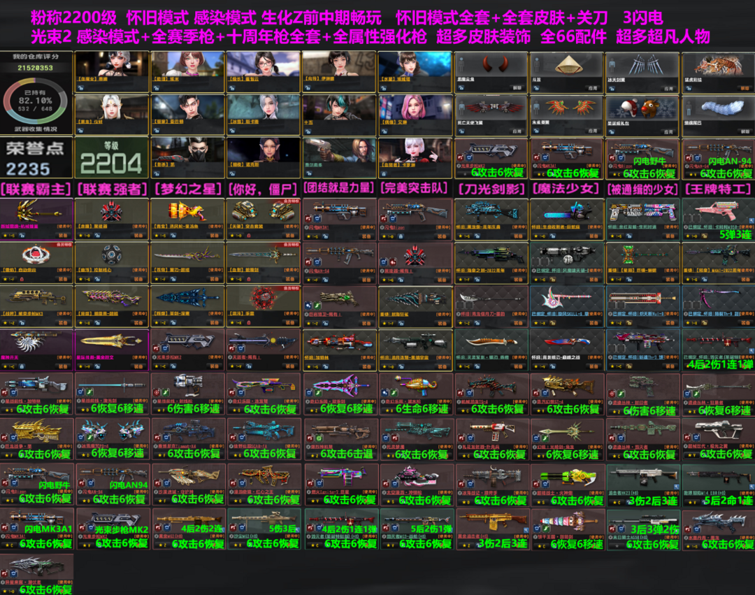 ☛AA〖双枪将〗☀粉称怀旧感染号☀怀旧全套+关刀+怀旧皮肤☀光束12☀3闪电☀全赛季☀超多人物