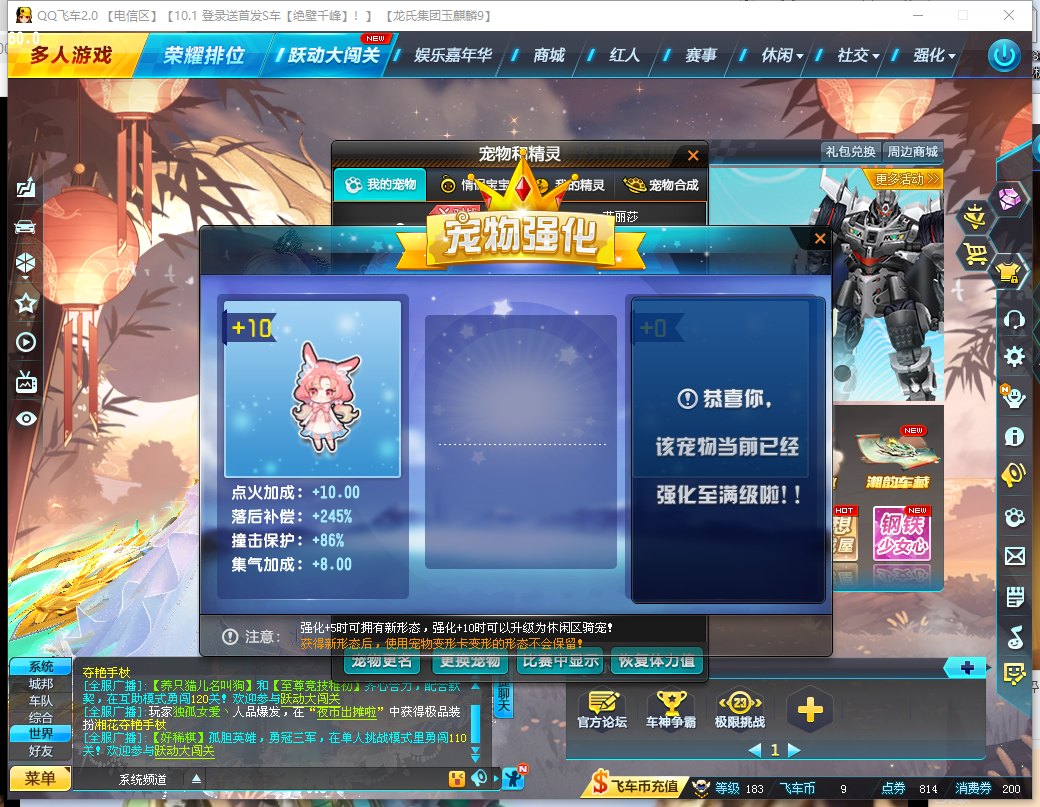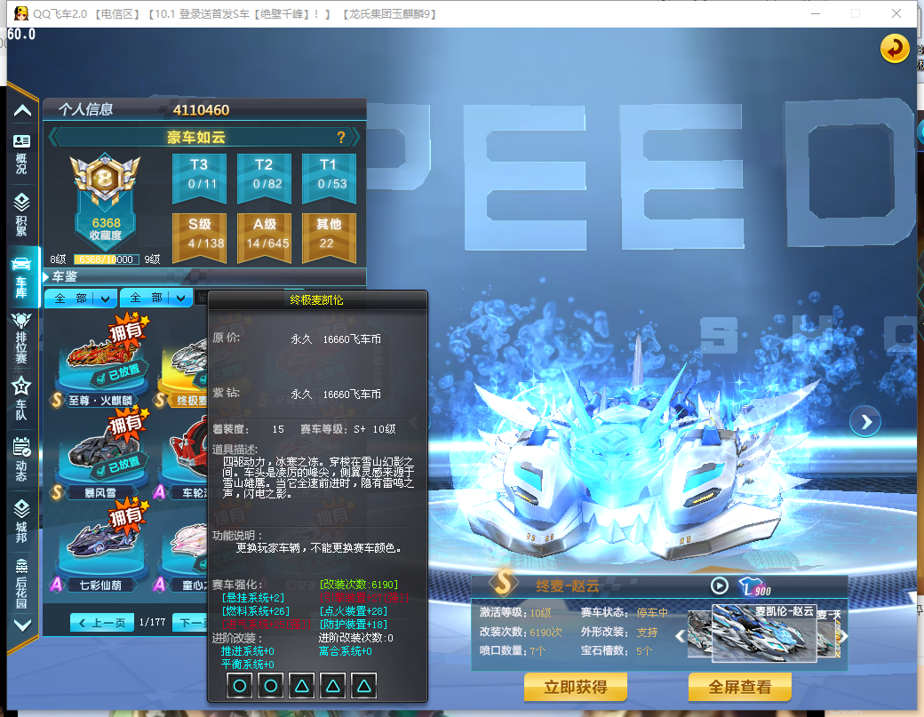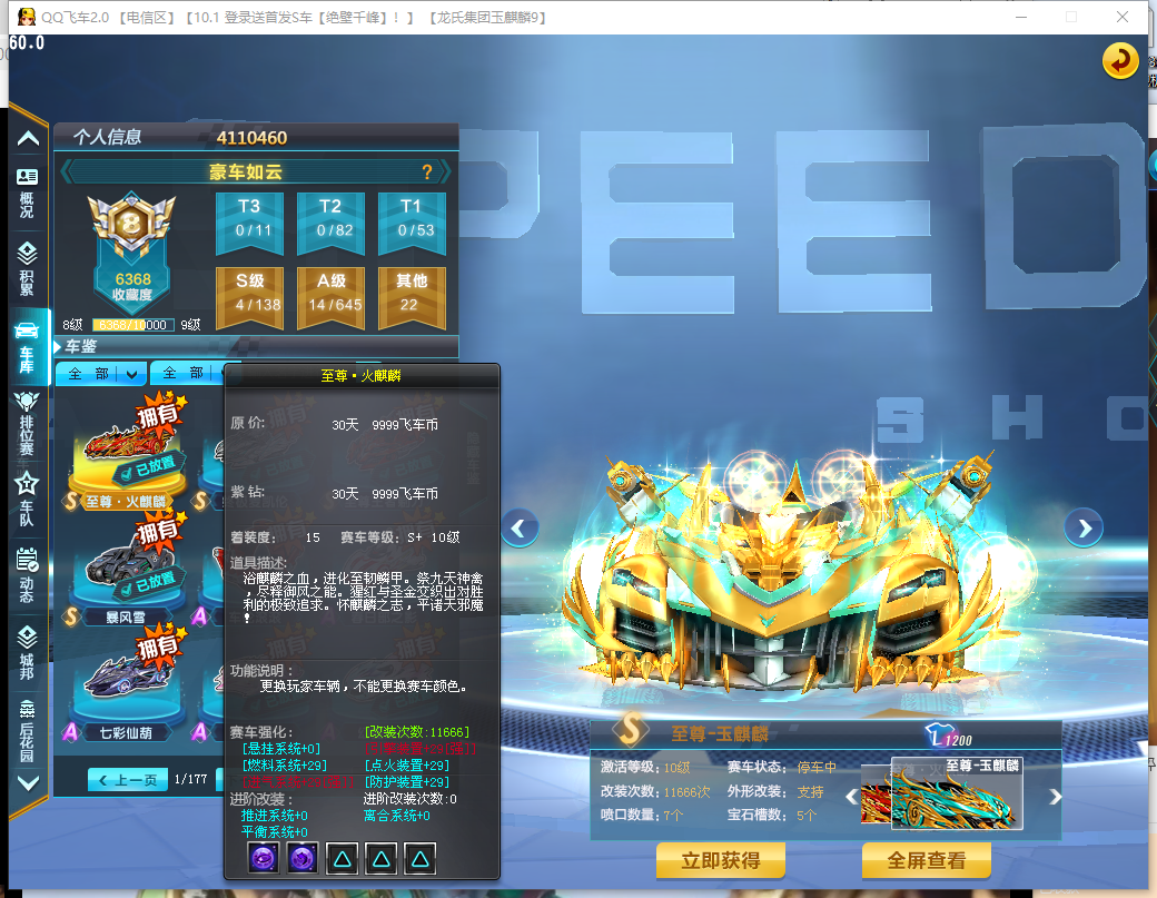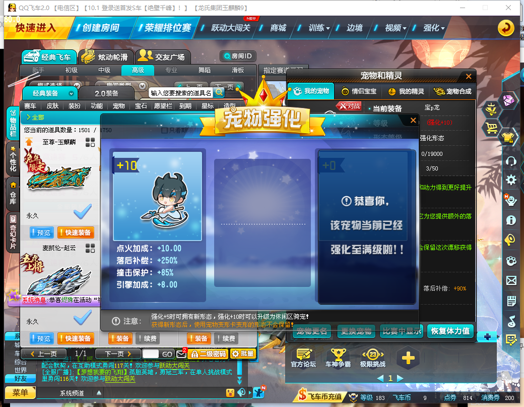 全29双4竞速至尊·玉麒麟=高改终极麦凯伦(赵云皮肤)=宠物艾丽莎强化+10、小赵云强化+10