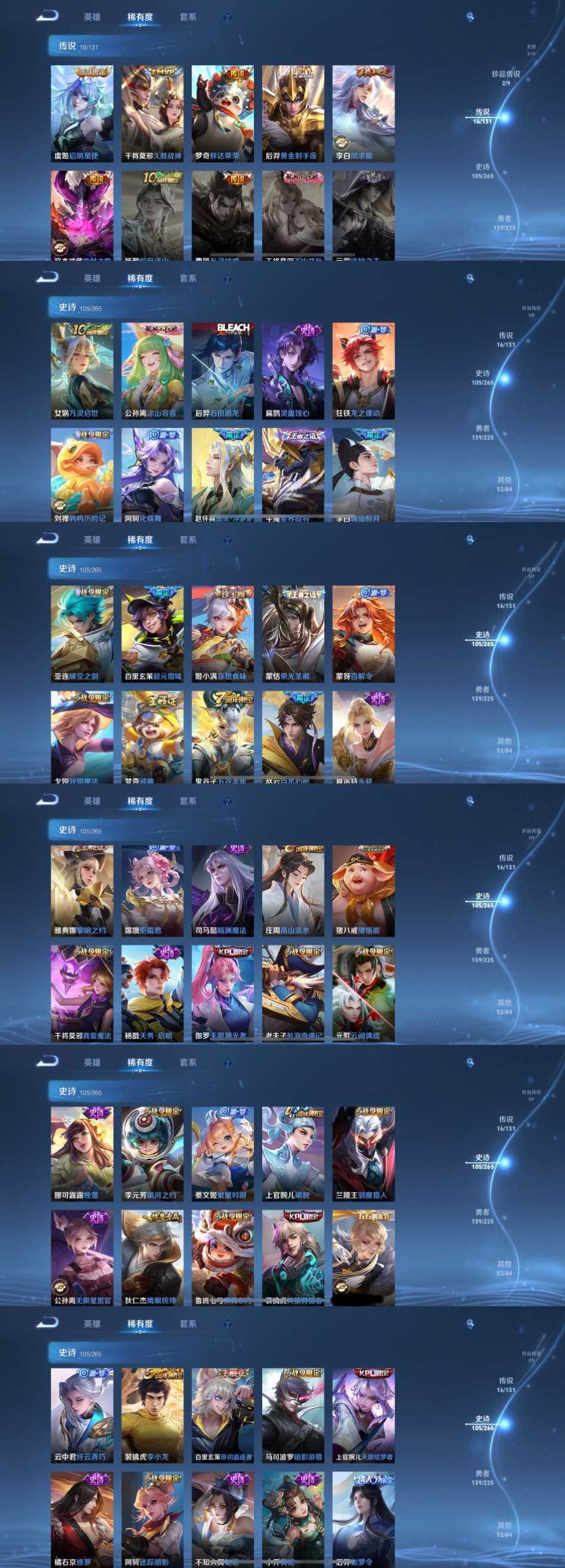 限制: 租号1次及以上 | 撤单率<49%才可租用此帐号装备描述:时间到了还登录白玩或者顶号全部改密拉黑处理永不解除,顶号机器会秒禁玩改密,顶号不仅拉黑还没得玩,赚三两块不容易,请理解谢谢。 ❤❤❤❤❤❤❤❤❤❤❤❤❤❤❤ 请勿开挂,挂机,送头,骂人,撤单后游戏等如有违规永久拉黑永不解除。 重置二级密码不要费劲了,号主每天都会上号查看,多行不义必自毙,人在做天在看,多做好事多自律,少做缺德事。 该号英雄127个皮肤317个,典藏1个,无双2个,珍品传说2个,星传说1个,传说16个,史诗105个,祝你游戏愉快~