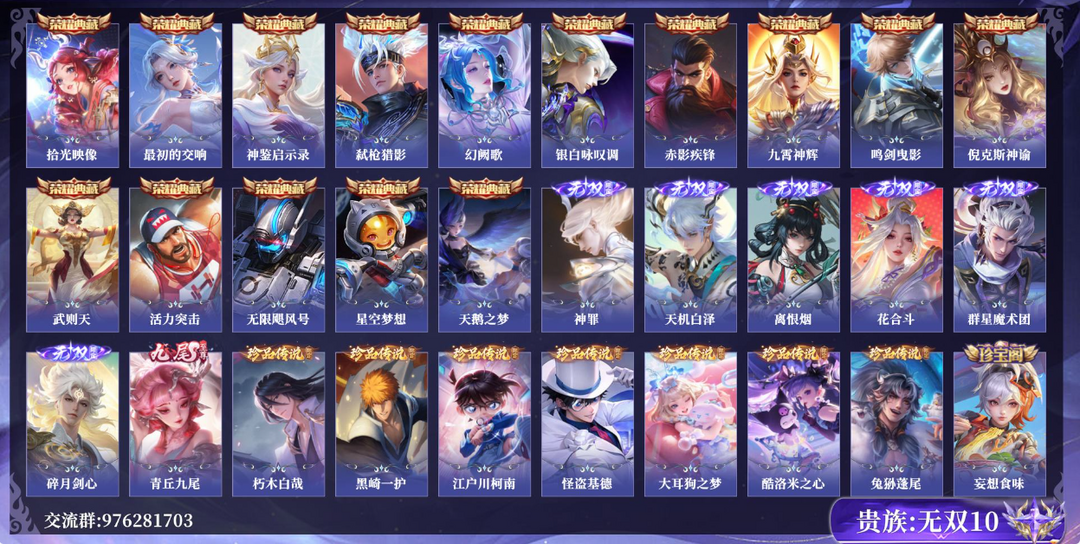 带妹首选✨无双V10✨铠李白无双✨555皮✨14典藏✨7无双✨7珍品✨81传说✨237限定✨