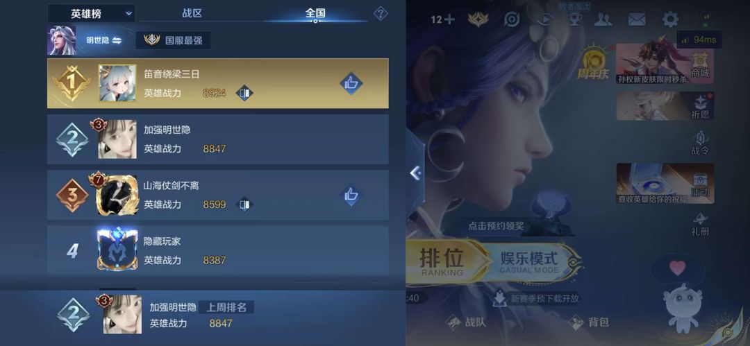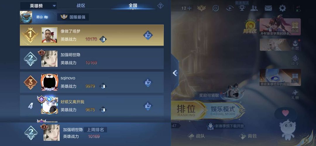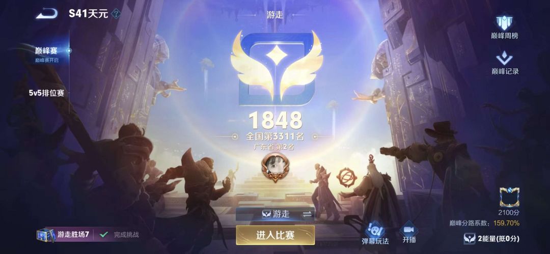 抢先服大国标明世隐,大国标盾山,巅峰赛1848 全国排名1000+ 可打排位可组队 欢迎宝宝下单