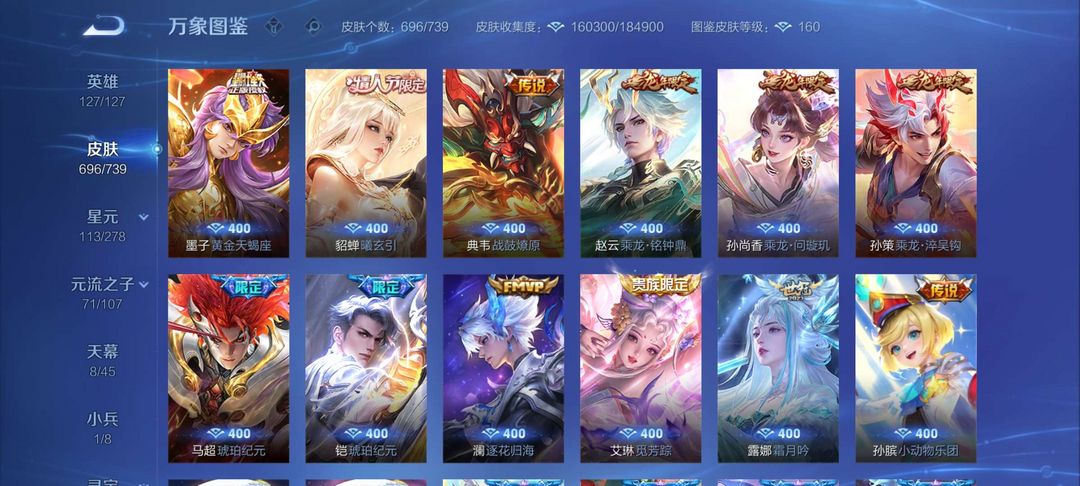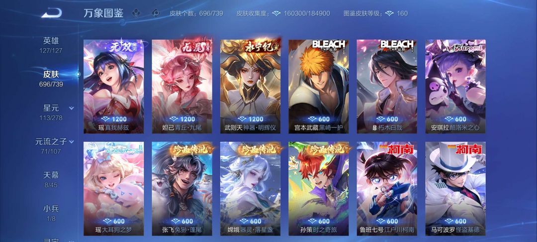 装备描述:全英雄694皮十水晶貂蝉珍品无双倪克斯神谕诡秘之主全套,虎兔龙蛇限全套,神奇女侠柯南基德,美少女战士三体限定等喜欢本账号请点 ☆收藏☆ 方便下次租用,谢谢光临惠顾!