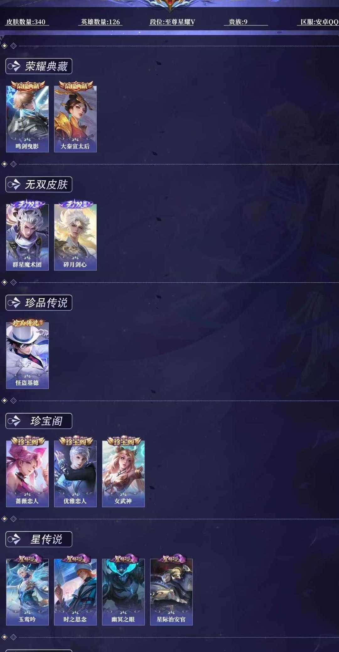 限制: 租号5次及以上 | 撤单率<50%才可租用此帐号装备描述:❤2典藏❤2无双❤1珍品❤4星传说❤马克怪盗柯基❤韩信群星魔术团❤李白碎月剑心❤