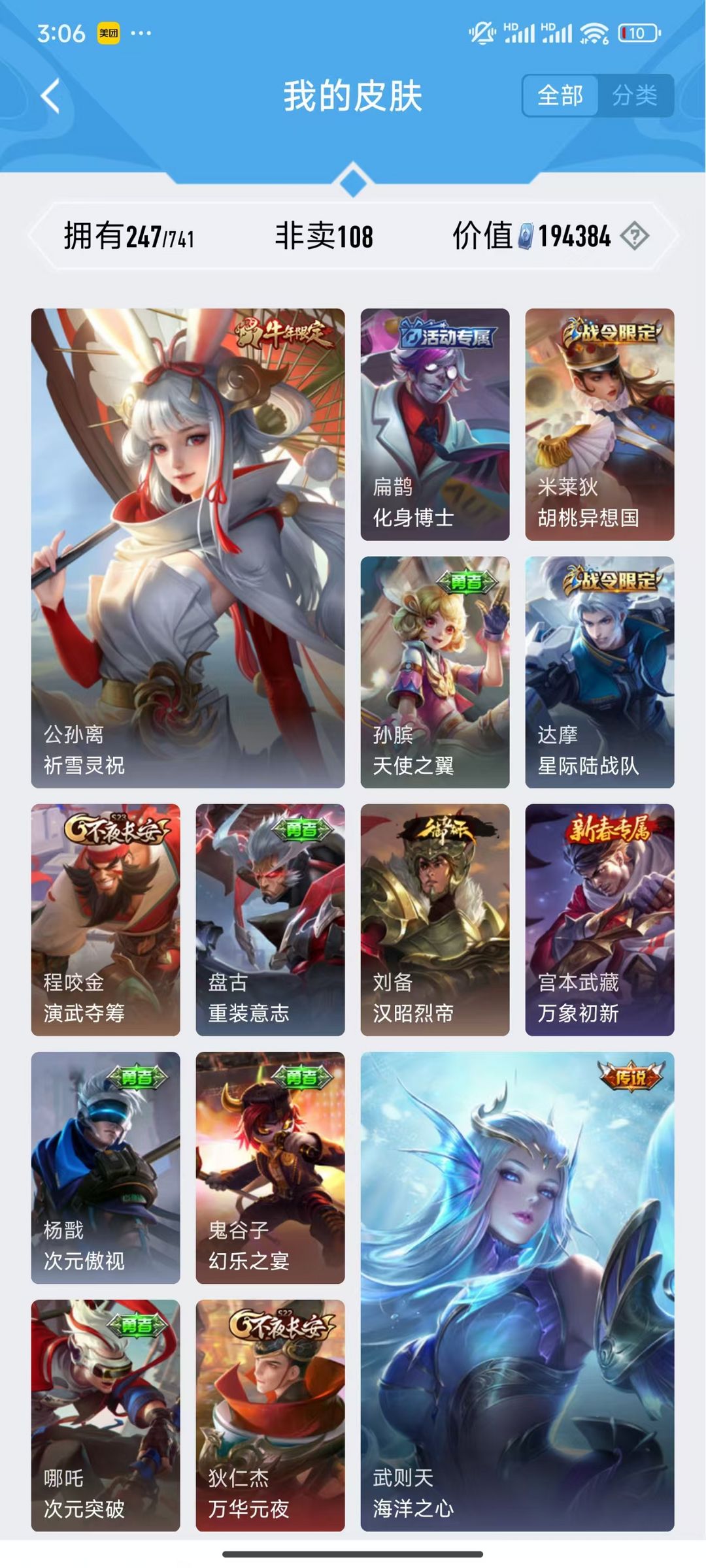 装备描述:倪克斯武陵仙君异界灵契时之祈愿(星元皮也有)海洋之泪(星元皮也有)久胜战神祈雪灵祝太华猫影幻舞