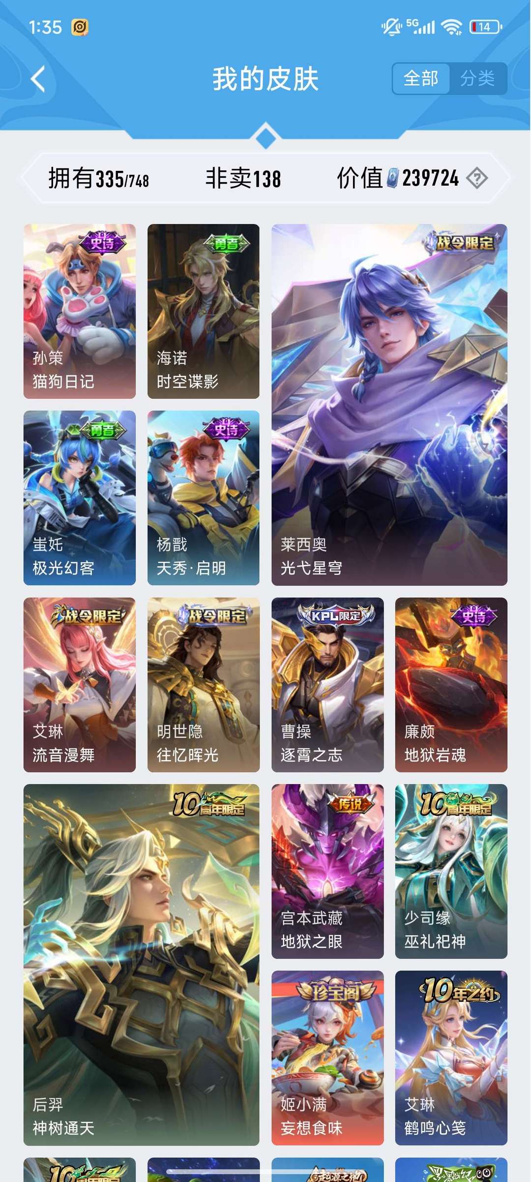 至圣王者|两典藏|皮肤300+|贵族7|至尊宝|杀手不太冷|全英雄|可排位|多款限定