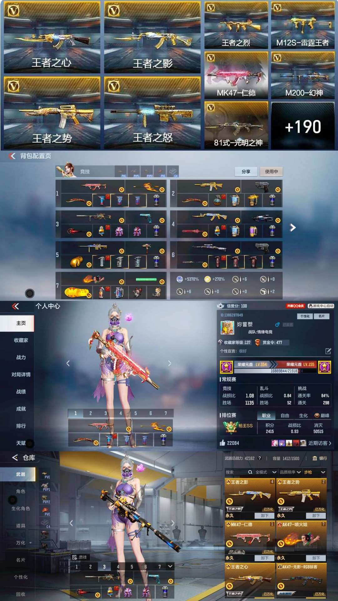 12王者♥王者之心之影之势之怒之烈༗雷霆王者༒白金血钻♞mk47仁德孟获♞M200幻神♥COP柯尔特